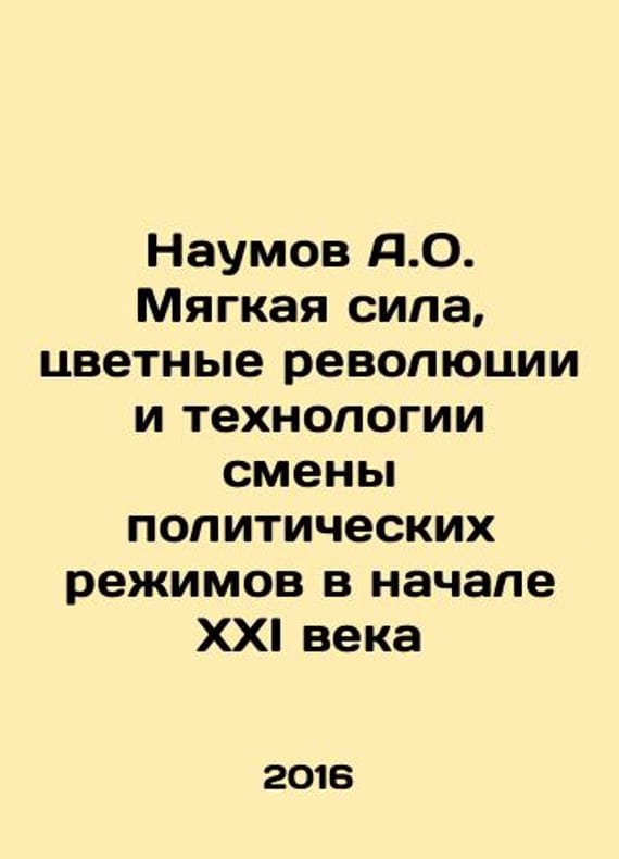 Naumov A.O. Soft Power, Color Revolutions and Technology for Political Regime Change at the Early 21st Century In Russian /Naumov A.O. Myagkaya sila, tsvetnye revolyutsii i tekhnologii smeny politicheskikh rezhimov v nachale XXI veka Monograph by M. Argamak-media 2016. 280 p. We have thousands of titles and often several copies of each title may be available. Please feel free to contact us for a detailed description of the copies available. SKUalbadd9d8f24ebe5a63.