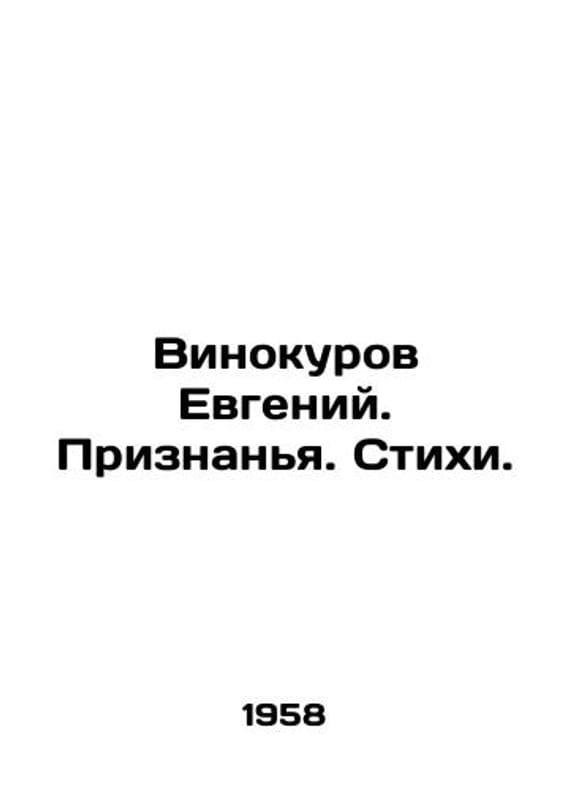 Vinokurov Evgeny. Confessions. Poems. In Russian /Vinokurov Evgeniy. Priznanya. Stikhi. M. Soviet writer 1958. 116 p. We have thousands of titles and often several copies of each title may be available. Please feel free to contact us for a detailed description of the copies available. SKUalbadfd682e9f9ba825.