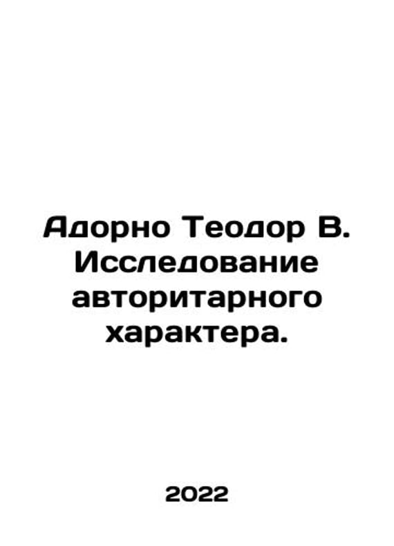 Adorno Theodore W. Authoritarian Research. In Russian /Adorno Teodor V. Issledovanie avtoritarnogo kharaktera. Series: Classics of Sociology Moscow Center for Humanitarian Initiatives Silver Threads 2022. 414 p. We have thousands of titles and often several copies of each title may be available. Please feel free to contact us for a detailed description of the copies available. SKUalbaeac6dba03ff1c3f.