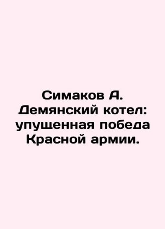 Simakov A. Demyansky cauldron: a lost victory for the Red Army. In Russian /Simakov A. Demyanskiy kotel: upushchennaya pobeda Krasnoy armii. M. Yauza-press 2022. 448 We have thousands of titles and often several copies of each title may be available. Please feel free to contact us for a detailed description of the copies available. The delivery of this book might be delayed beyond the usual timeframe due to extended processing and preparation before shipment, and faster shipping options are not offered. Please inform us if you need the order by a certain date or have a deadline.SKUalbae731b9f45d3d6ec
