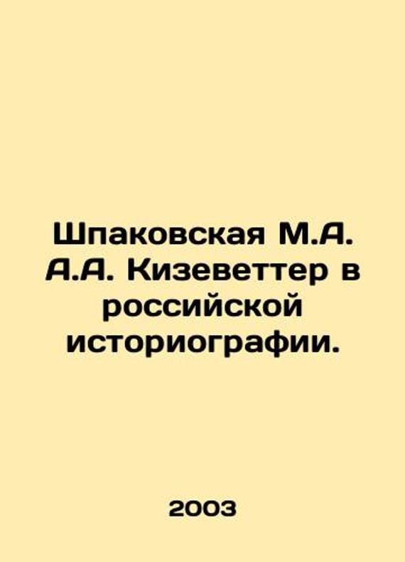 Shpakovskaya M.A. Kizevetter in Russian Historiography. In Russian /Shpakovskaya M.A. A.A. Kizevetter v rossiyskoy istoriografii.Moscow Publishing House of Peoples Friendship. 2003.We have thousands of titles and often several copies of each title may be available. Please feel free to contact us for a detailed description of the copies available. SKUalbae871d04b2a29752.