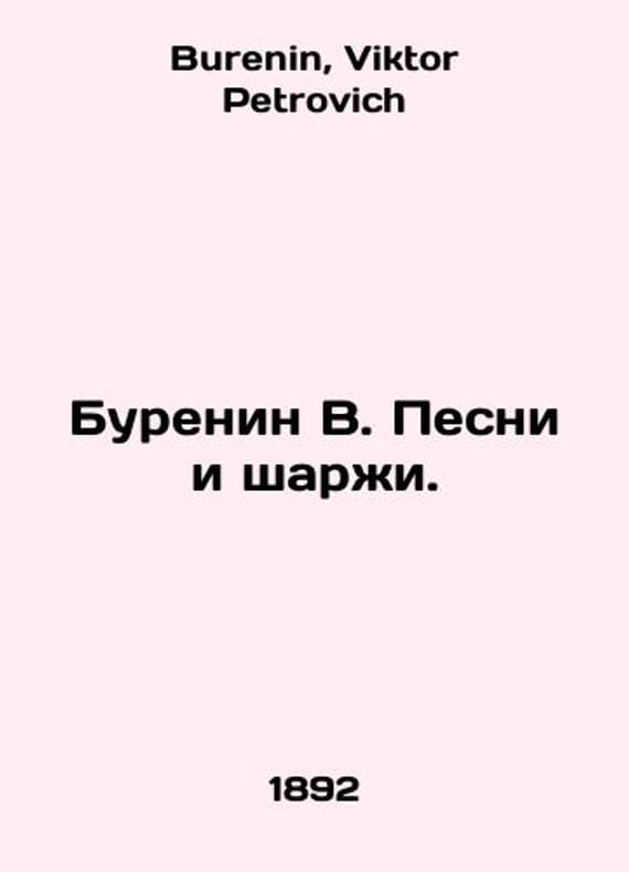 Burenin V. Songs and cartoons. In Russian /Burenin V. Pesni i sharzhi. St. Petersburg Typography by A.S. Suvorin. 1892. 367, V p. We have thousands of titles and often several copies of each title may be available. Please feel free to contact us for a detailed description of the copies available. SKUalbae8bce6d38bbfbdf.