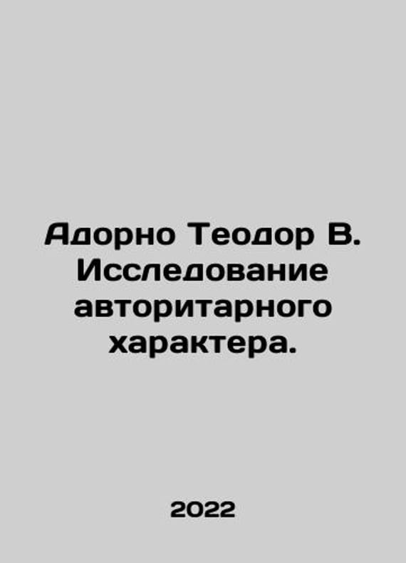 Adorno Theodore W. Authoritarian Research. In Russian /Adorno Teodor V. Issledovanie avtoritarnogo kharaktera. Series: Classics of Sociology Moscow Center for Humanitarian Initiatives Silver Threads 2022. 414 p. We have thousands of titles and often several copies of each title may be available. Please feel free to contact us for a detailed description of the copies available. SKUalbae28fdca173ee239.