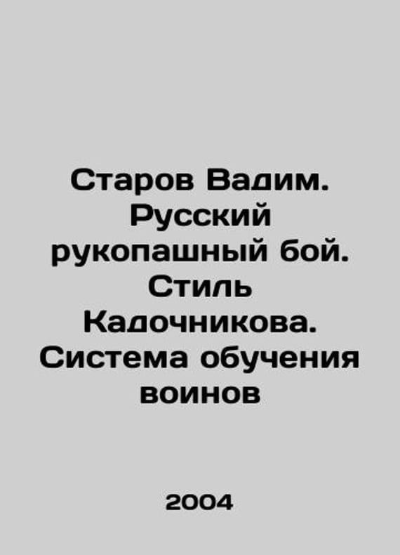 Starov Vadim. Russian hand-to-hand combat. Kadochnikov style In Russian /Starov Vadim. Russkiy rukopashnyy boy. Stil Kadochnikova. Sistema obucheniya voinov Tver International Centre for Russian Hand-to-Hand Fighting Russian Style 2004 400 p. We have thousands of titles and often several copies of each title may be available. Please feel free to contact us for a detailed description of the copies available. SKUalbaef38f06d2145ca4.