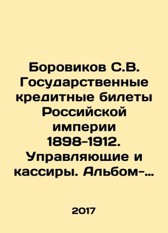Borovikov S.V. State credit cards of the Russian Empire 1898-1912. Managers and cashiers In Russian /Borovikov S.V. Gosudarstvennye kreditnye bilety Rossiyskoy imperii 1898-1912. Upravlyayushchie i kassiry. Albom-katalog. 2nd edition, updated and updated. St. Petersburg Dean 2017. 240c. We have thousands of titles and often several copies of each title may be available. Please feel free to contact us for a detailed description of the copies available. SKUalbaf064053308432b1.