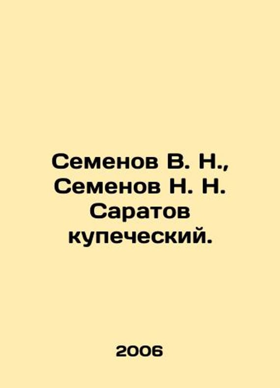 Semenov V. N., Semenov N. N. Saratov Merchant. In Russian /Semenov V. N., Semenov N. N. Saratov kupecheskiy. Saratov. Volga Book Publishing House. 2006. 200 p. We have thousands of titles and often several copies of each title may be available. Please feel free to contact us for a detailed description of the copies available. SKUalbaf12d2f5ace21c0b.