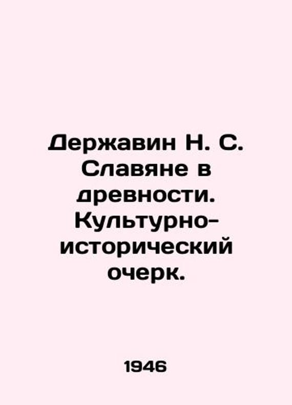 N. S. Derzhavin Slavs in Antiquity. A Cultural and Historical Essay. In Russian (ask us if in doubt)/Derzhavin N. S. Slavyane v drevnosti. Kul'turno-istoricheskiy ocherk.. description: In Russian (ask us if in doubt).Moscow Academy of Sciences of the USSR. 1946. 216 p. We have thousands of titles and often several copies of each title may be available. Please feel free to contact us for a detailed description of the copies available. SKUalbaf3afecb1059a3c2