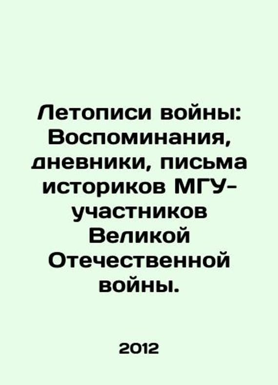 Chronicles of the War: Memories, Diaries, and Letters by Historians of Moscow State University-Great Patriotic War. In Russian /Letopisi voyny: Vospominaniya, dnevniki, pisma istorikov MGU-uchastnikov Velikoy Otechestvennoy voyny. Moscow State University Publishing House 2012. 327 p. We have thousands of titles and often several copies of each title may be available. Please feel free to contact us for a detailed description of the copies available. SKUalbaf5fe1ce53e9637b.