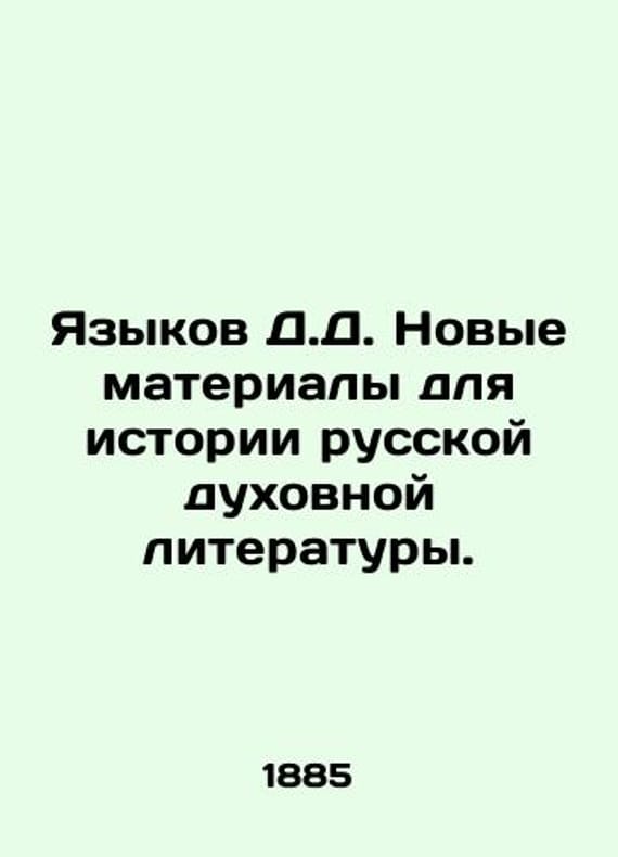 D.D. Languages New Materials for the History of Russian Theological Literature. In Russian (ask us if in doubt)/Yazykov D.D. Novye materialy dlya istorii russkoy dukhovnoy literatury.. Editorial Board of the journal Bibliographer. S.-Pb.Typo-lit. V. Freiman. 1885. 17s. SKUalbaf799f7a47971797.