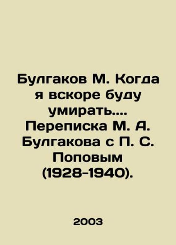 Bulgakov M. When Im Soon to Die. Correspondence between Bulgakov and Popov (1928-1940). In Russian /Bulgakov M. Kogda ya vskore budu umirat. Perepiska M. A. Bulgakova s S. Popovym (1928-1940).M., Eksmo, 2003.We have thousands of titles and often several copies of each title may be available. Please feel free to contact us for a detailed description of the copies available. SKUalbaf90ca315ef98448.