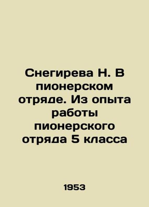N. Snegireva In the Pioneer Squad. From the experience of the Pioneer Squad 5th Class In Russian /Snegireva N. V pionerskom otryade. Iz opyta raboty pionerskogo otryada 5 klassa Uchpedgiz 1953, 80 p. We have thousands of titles and often several copies of each title may be available. Please feel free to contact us for a detailed description of the copies available. SKUalbafab6a208dc82e00.