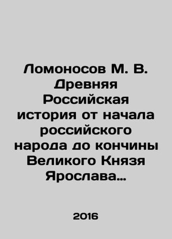 Lomonosov M. V. Ancient Russian history from the beginning of the Russian people until the death of the Grand Duke Yaroslav I, or until 1054, composed by Mikhail Lomonosov. In Russian /Lomonosov M. V. Drevnyaya rossiyskaya istoriya ot nachala rossiyskogo naroda do konchiny velikogo knyazya Yaroslava Pervogo, ili do 1054 goda, sochinennaya Mikhaylom Lomonosovym. Reprint of the 1847 edition of ill.-M. Pravda Severa-Belye Alva, 2006, 244 p. We have thousands of titles and often several copies of each title may be available. Please feel free to contact us for a detailed description of the copies available. SKUalb39a9eec0228713c7.