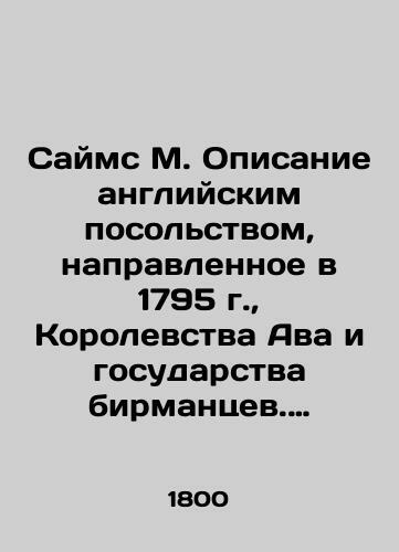 """Syms M. Description of the British Embassy sent in 1795 the Kingdom of Awa and the Burmese State. Atlas of Illustrations In Russian (ask us if in doubt)/Sayms M. Opisanie angliyskim posol'stvom napravlennoe v 1795 g. Korolevstva Ava i gosudarstva birmantsev. Atlas illyustratsiy Short description: In Russian (ask us if in doubt).Relation de lAmbassador Anglaise envoyee in 1795 in le Royaume dAva ou lEmpire des Birmans; par le Major Michel Symes charge de Cette Ambassador Collection de Planches Paris: F. Buisson 1800 32 l. We have thousands of titles and often several copies of each title may be available. Please feel free to contact us for a detailed description of the copies available. SKUalbafc17f3de9cd8497"""