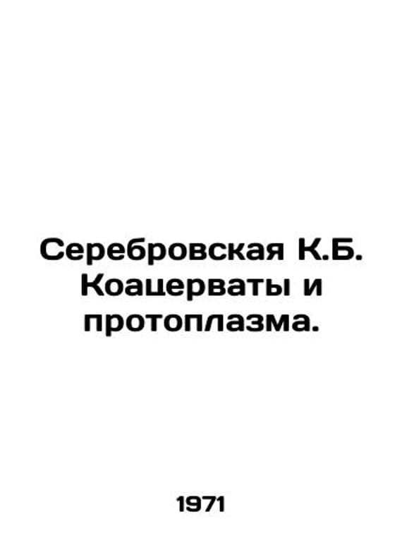 Serebrovskaya K.B. Coacervates and protoplasma. In Russian /Serebrovskaya K.B. Koatservaty i protoplazma.Rev. editor A.I. Oparin. Artist V.E. Gorin. Order of Lenin Institute of Biochemistry named after A.N. Bach of the Academy of Sciences of the USSR. M. Science 1971.We have thousands of titles and often several copies of each title may be available. Please feel free to contact us for a detailed description of the copies available. SKUalbafdca3626832e8d6.