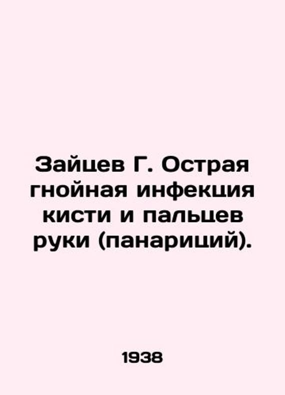 Hares G. Acute purulent infection of the hand and fingers (panaricii). In Russian /Zaytsev G. Ostraya gnoynaya infektsiya kisti i paltsev ruki (panaritsiy). M Medgiz 1938. We have thousands of titles and often several copies of each title may be available. Please feel free to contact us for a detailed description of the copies available. SKUalbafe3ec5f8a4c6bef.