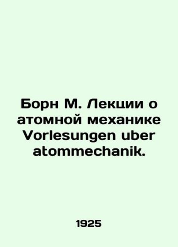 Born M. Lectures on atomic mechanics Vorlesungen uber atommechanik. In German /Born M. Lektsii o atomnoy mekhanike Vorlesungen uber atommechanik. In German. Vol. 1. Series: Matter Structure. Published in collaboration with Friedrich Hund. Berlin. Publishing House Julius Spinger. 1925. 358 p. We have thousands of titles and often several copies of each title may be available. Please feel free to contact us for a detailed description of the copies available. SKUalbb01969c9e6e6e77d.