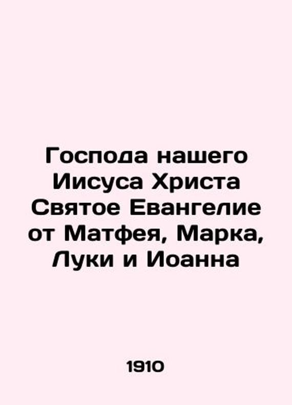 Our Lord Jesus Christ, the Holy Gospel according to Matthew, Mark, Luke, and John In Russian /Gospoda nashego Iisusa Khrista Svyatoe Evangelie ot Matfeya, Marka, Luki i Ioanna M. Synodal Printing House 1911. 418 p. We have thousands of titles and often several copies of each title may be available. Please feel free to contact us for a detailed description of the copies available. SKUalbf759ac7206834301.