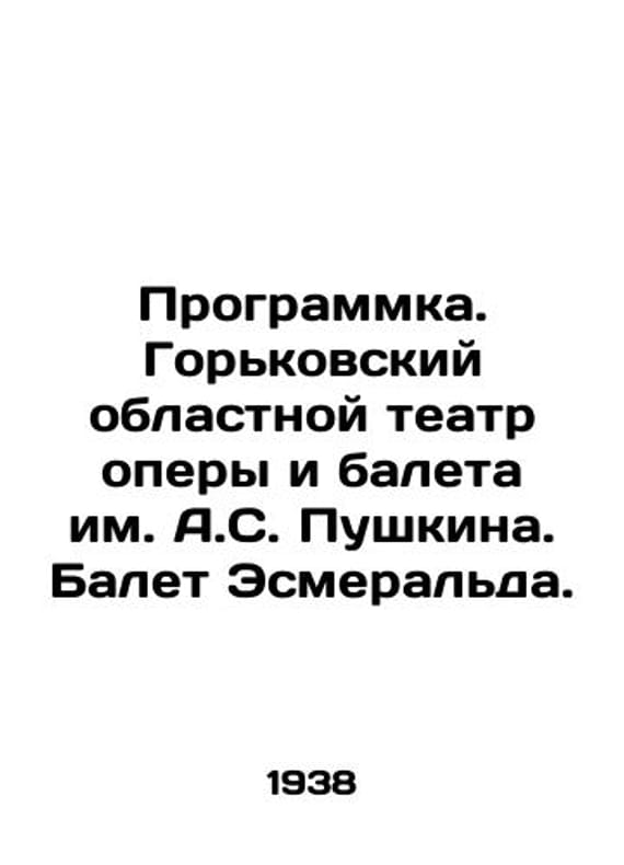 Program. Pushkin Gorky Regional Opera and Ballet Theatre. Esmeralda Ballet. In Russian /Programmka. Gorkovskiy oblastnoy teatr opery i baleta im. A.S. Pushkina. Balet Esmeralda. Ballet in 3 acts, 9 pictures with an epilogue based on the novel by V.Hugo Notre Dame of Paris. Music of Pouny, Glier. Gorky. Department of Arts of the Bitter Regional Executive Committee. 1938. We have thousands of titles and often several copies of each title may be available. Please feel free to contact us for a detailed description of the copies available. SKUalbb0eaf7c7d00ba0a9.