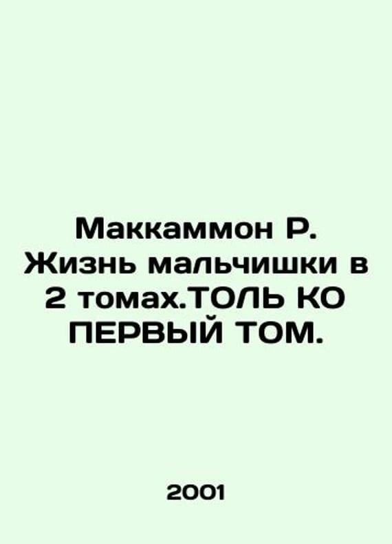 McCammon R. The life of a boy in 2 volumes. Only A FIRST Vol. In Russian /Makkammon R. Zhizn malchishki v 2 tomakh.TOL KO PERVYY TOM. Series: The Dark City of the ACT 2001. 367 pp. We have thousands of titles and often several copies of each title may be available. Please feel free to contact us for a detailed description of the copies available. SKUalbb146944739c95f53.