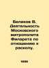 Belikov V. Activities of Moscow Metropolitan Filaret in relation to the split. In Russian (ask us if in doubt)/Belikov V. Deyatelnost Moskovskogo mitropolita Filareta po otnosheniyu k raskolu. Short description: In Russian (ask us if in doubt).Kazan typo-lithography of the Imp. University of 1896 564 + X + IV c.c. Defended his masters thesis in 1896 Activity of Moscow Metropolitan Filaret in relation to the split. We have thousands of titles and often several copies of each title may be available. Please feel free to contact us for a detailed description of the copies available. SKUalbb14d25f06689e7fa