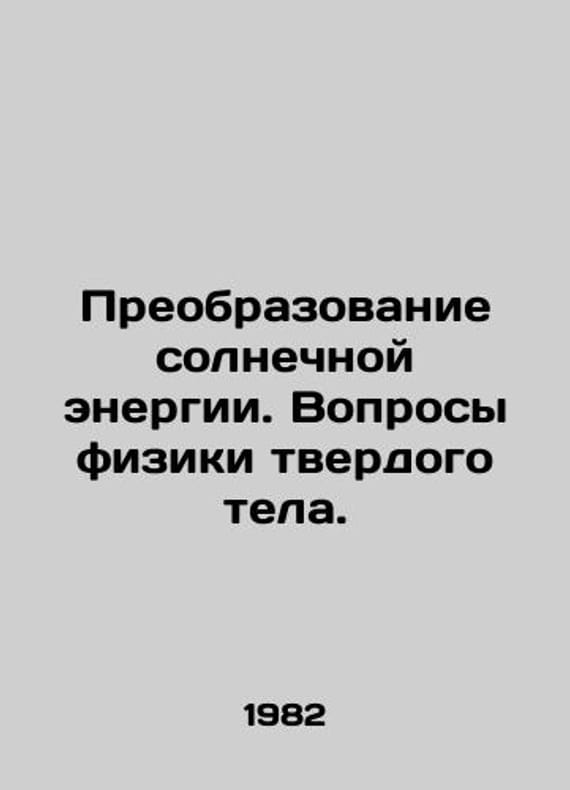 Solar energy transformation. Solid-body physics issues. In Russian /Preobrazovanie solnechnoy energii. Voprosy fiziki tverdogo tela. Translation from English. Moscow. Energoizdat. 1982. 320 p. We have thousands of titles and often several copies of each title may be available. Please feel free to contact us for a detailed description of the copies available. SKUalbb243e5c36796ac63.