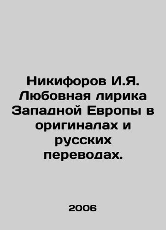 Nikiforov I.Ya. The love lyrics of Western Europe in originals and Russian translations. In Russian /Nikiforov I.Ya. Lyubovnaya lirika Zapadnoy Evropy v originalakh i russkikh perevodakh. Vol.3. French poets of the first half of the 19th century. Rostov-on-Don: IC DSTU, 2006. We have thousands of titles and often several copies of each title may be available. Please feel free to contact us for a detailed description of the copies available. SKUalbb291d29555bbf468.