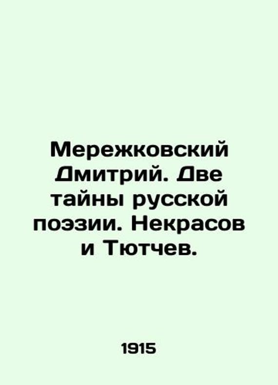 Merezhkovsky Dmitry. Two Secrets of Russian Poetry. Nekrasov and Tyutchev. In Russian /Merezhkovskiy Dmitriy. Dve tayny russkoy poezii. Nekrasov i Tyutchev. Petrograd. Edition of T. I. D. Sytin. 1915. We have thousands of titles and often several copies of each title may be available. Please feel free to contact us for a detailed description of the copies available. SKUalbb29a1cfb17c675e8.