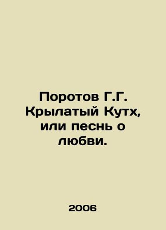 Porotov G.G. Winged Kut, or Love Song. In Russian /Porotov G.G. Krylatyy Kutkh, ili pesn o lyubvi. Poem. Hud. Voroshilov. In Russian and English. Moscow 2006. We have thousands of titles and often several copies of each title may be available. Please feel free to contact us for a detailed description of the copies available. SKUalbb2b87c9507ddf35c.