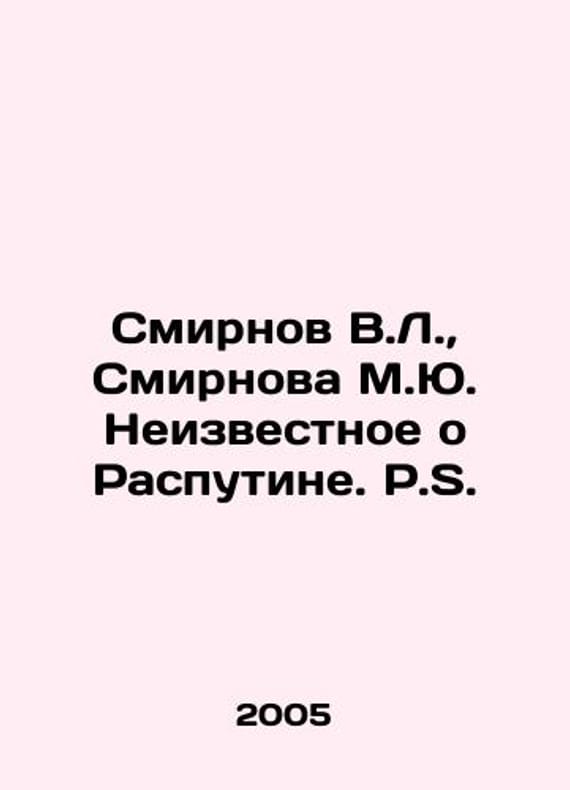 Smirnov V.L., Smirnov M.Yu. Unknown about Rasputin. S. In Russian /Smirnov V.L., Smirnova M.Yu. Neizvestnoe o Rasputine. S.Tyumen. Word. 2005.We have thousands of titles and often several copies of each title may be available. Please feel free to contact us for a detailed description of the copies available. SKUalbb2d8cb523ee62f19.