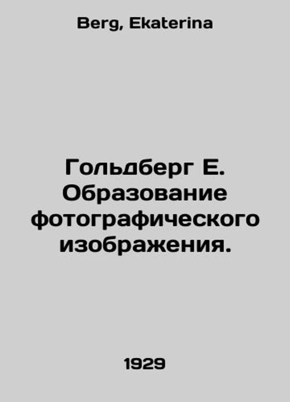 Goldberg E. Formation of a photographic image. In Russian /Goldberg E. Obrazovanie fotograficheskogo izobrazheniya. Prof. E. Goldberg: Translated by K.A. Kolosov, edited by A.I. Rabinovich. (Library of the journal Soviet Photo: Book 29, Moscow, 1929. 104 p. We have thousands of titles and often several copies of each title may be available. Please feel free to contact us for a detailed description of the copies available. SKUalbb2f0be644d6ef7d2.