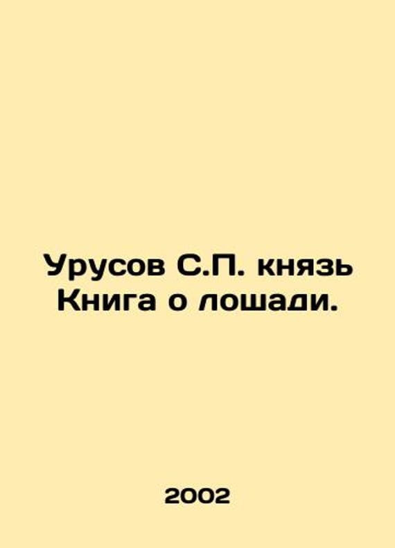 Urusov S.P. Prince The Book About the Horse. In Russian /Urusov S.P. knyaz Kniga o loshadi. Handbook of a horse breeder, horse breeder and horse lover. Moscow: Centropolygraph 2002. 1020s. We have thousands of titles and often several copies of each title may be available. Please feel free to contact us for a detailed description of the copies available. SKUalbb32d87824f27e8bd.
