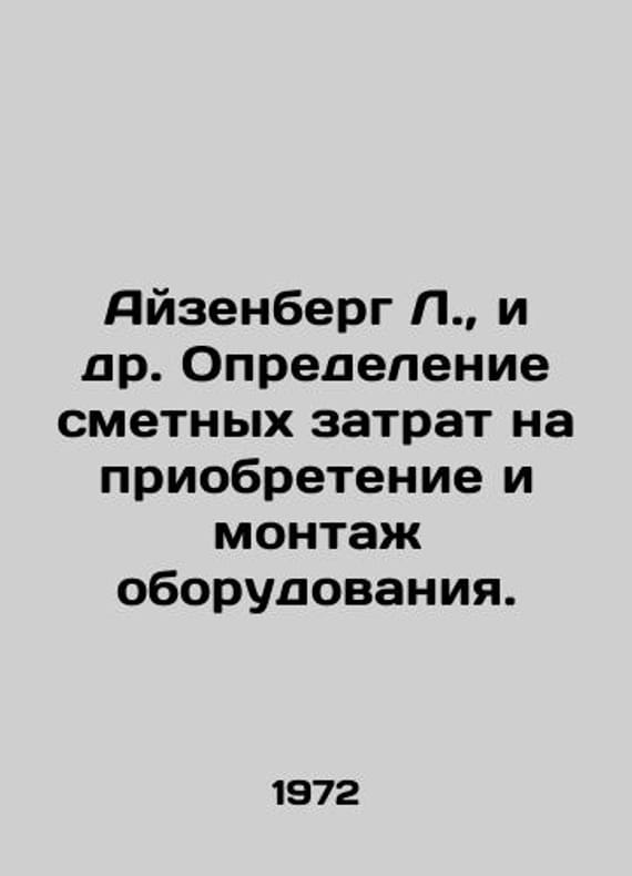 Aisenberg L. et al. Estimating the cost of purchasing and installing equipment In Russian /Ayzenberg L., i dr. Opredelenie smetnykh zatrat na priobretenie i montazh oborudovaniya. M Stroyizdat 1972. We have thousands of titles and often several copies of each title may be available. Please feel free to contact us for a detailed description of the copies available. SKUalbb3473b11b0c5705b.