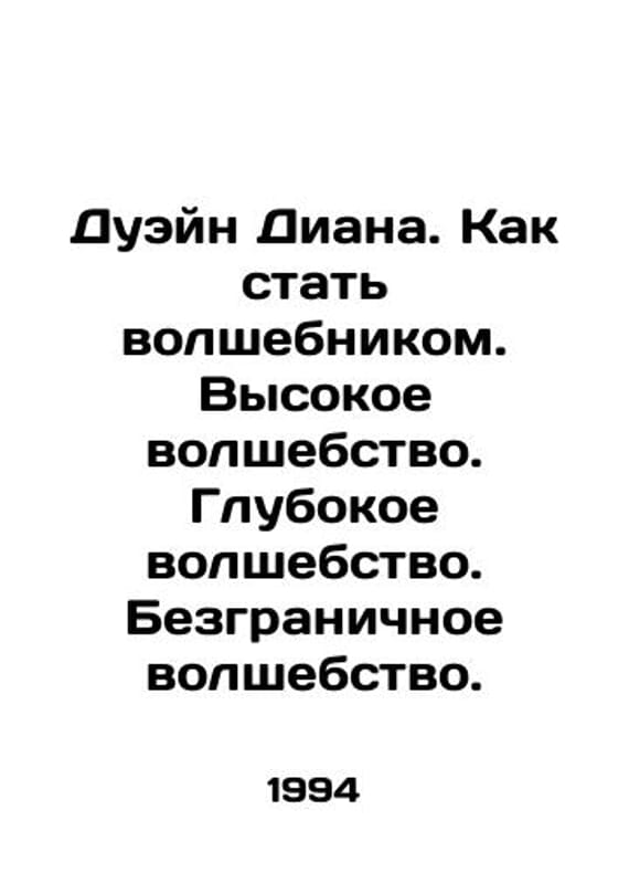 Dwayne Diane. How to become a magician. High magic. Deep magic. Unlimited magic. In Russian /Dueyn Diana. Kak stat volshebnikom. Vysokoe volshebstvo. Glubokoe volshebstvo. Bezgranichnoe volshebstvo. Series: M. Armadas Castle of Miracles 1994. We have thousands of titles and often several copies of each title may be available. Please feel free to contact us for a detailed description of the copies available. SKUalbb35297d094859a0d.
