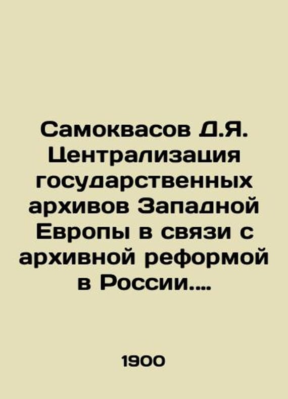 Samokvasov D.Ya. Centralization of state archives in Western Europe in connection with archival reform in Russia. From the books of academician A.S. Lappo-Danilevsky. In Russian /Samokvasov D.Ya. Tsentralizatsiya gosudarstvennykh arkhivov Zapadnoy Evropy v svyazi s arkhivnoy reformoy v Rossii. Iz knig akademika A.S. Lappo-Danilevskogo. Extracted from the Bulletin of Archaeology and History, Issue XIII. St. Petersburg Typography by A.P. Lopukhin, 1900, 13 p. We have thousands of titles and often several copies of each title may be available. Please feel free to contact us for a detailed description of the copies available. SKUalbb35e503a75244843.