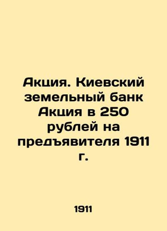 Event. Kyiv Land Bank Event of 250 roubles for bearer 1911 In Russian (ask us if in doubt)/Aktsiya. Kievskiy zemelnyy bank Aktsiya v 250 rubley na predyavitelya 1911 g. Fourth issue. Kyiv. 1911. Circulation of 1 000 copies. The coupon and four coupons for 1918-1920 are not cut off. The number and series of the action may not coincide with the number and series presented in the photograph. We have thousands of titles and often several copies of each title may be available. Please feel free to contact us for a detailed description of the copies available. SKUalbb3858da4fc22936e