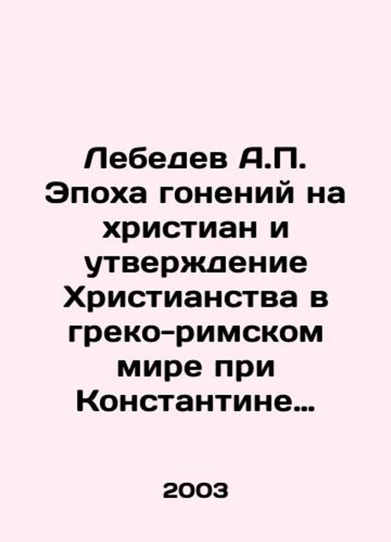 Lebedev A.P. The era of persecution of Christians and the establishment of Christianity in the Greco-Roman world under Constantine the Great. In Russian /Lebedev A.P. Epokha goneniy na khristian i utverzhdenie Khristianstva v greko-rimskom mire pri Konstantine Velikom. Library of Christian Thought. Publishing House No. 2, amended and supplemented by St. Petersburg: Publishing House of Oleg Abyshko, 2003, 364s. We have thousands of titles and often several copies of each title may be available. Please feel free to contact us for a detailed description of the copies available. SKUalbb3b387494832ff00.