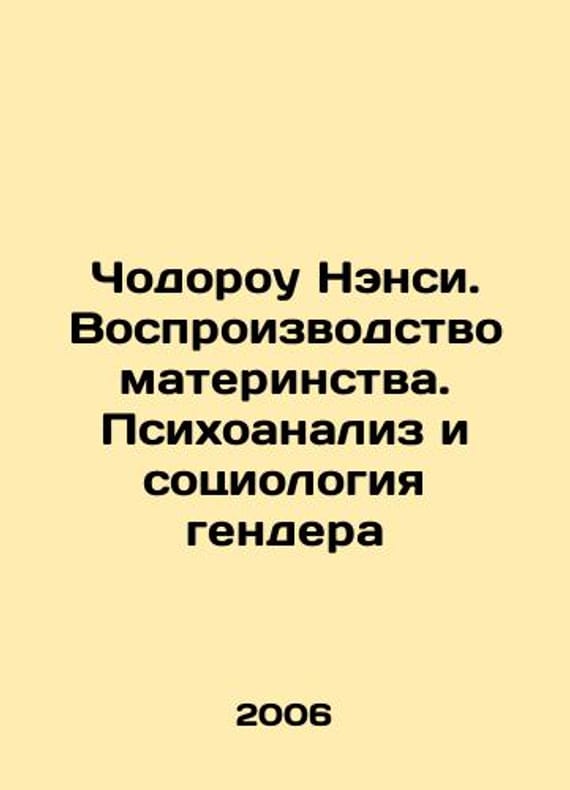 Nancy Chodorou: Reproduction of Motherhood: Psychoanalysis and Sociology of Gender In Russian /Chodorou Nensi. Vosproizvodstvo materinstva. Psikhoanaliz i sotsiologiya gendera M. ROSSPEN 2006. 496 p. We have thousands of titles and often several copies of each title may be available. Please feel free to contact us for a detailed description of the copies available. SKUalbb3c454cb8784092b.