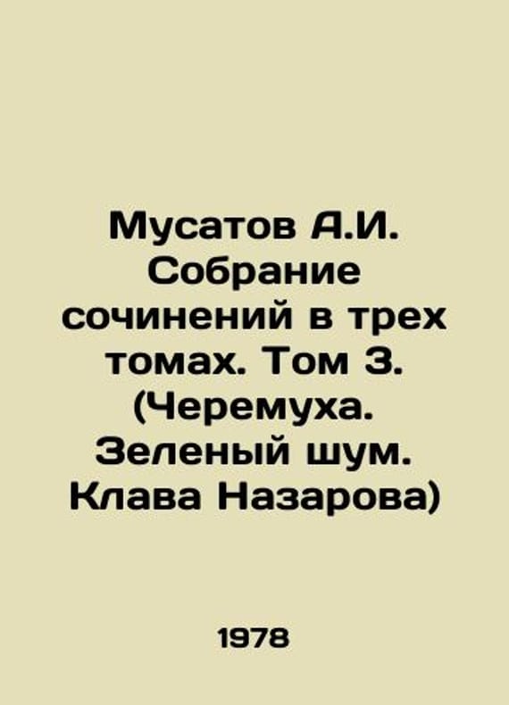 Musatov A.I. Collection of essays in three volumes. Volume 3. (Cheremukha. Green Noise. Klava Nazarov) In Russian /Musatov A.I. Sobranie sochineniy v trekh tomakh. Tom 3. (Cheremukha. Zelenyy shum. Klava Nazarova) M Child Literature 1978.We have thousands of titles and often several copies of each title may be available. Please feel free to contact us for a detailed description of the copies available. SKUalbb3d93d15135ac122.