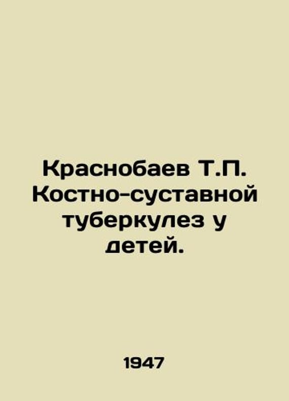 Krasnobaev T.P. Bone-joint tuberculosis in children In Russian /Krasnobaev T.P. Kostno-sustavnoy tuberkulez u detey. Obshchaya chast. First Edition. Moscow-Leningrad State Publishing House 1928. 224 p. We have thousands of titles and often several copies of each title may be available. Please feel free to contact us for a detailed description of the copies available. SKUalb3e2fc4f91eac0b68.