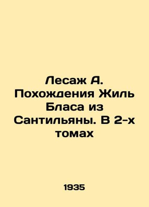 Lesage A. The Adventures of Gilles Blas of Santillana. In 2 Volumes In Russian (ask us if in doubt)/Lesazh A. Pokhozhdeniya Zhil' Blasa iz Santil'yany. V 2-kh tomakh Short description: In Russian (ask us if in doubt).French Literature. Translated and noted by G.I. Yahro. Enter article by S.S. Mokulsky. Zhigu 10 300 copies of Academia 1935 Vol. 1 LXXVI 664 p. We have thousands of titles and often several copies of each title may be available. Please feel free to contact us for a detailed description of the copies available. SKUalbb44289e54f3c7e60