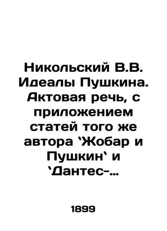 Nikolsky V.V. Pushkins Ideals: An Actual Speech, accompanied by articles by the same author: Jobar and Pushkin and Dantes-Gekkerens. In Russian /Nikolskiy V.V. Idealy Pushkina. Aktovaya rech, s prilozheniem statey togo zhe avtora Zhobar i Pushkin i Dantes-Gekkeren. S.Pb.Type A.S.Suvorina. 1899.y. X, 152 p. We have thousands of titles and often several copies of each title may be available. Please feel free to contact us for a detailed description of the copies available. SKUalbb46b17b6af48e8d0.