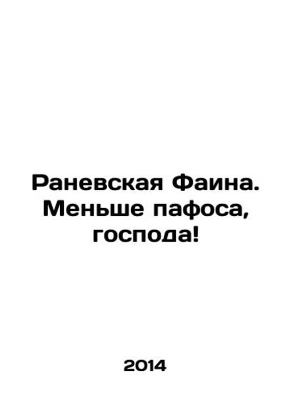 Ranevskaya Faina. Less pathos, gentlemen In Russian /Ranevskaya Faina. Menshe pafosa, gospoda M. Centropolygraph. 2014. 192s. We have thousands of titles and often several copies of each title may be available. Please feel free to contact us for a detailed description of the copies available. SKUalbb47be148ddb80175.