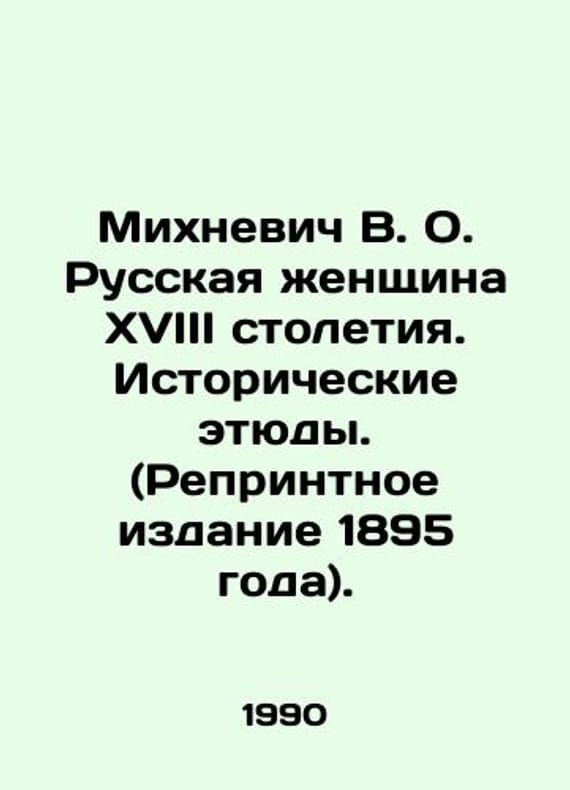 Mikhnevich V. O. Russian Woman of the 18th Century. Historical Studies. (Reprinted 1895). In Russian /Mikhnevich V. O. Russkaya zhenshchina XVIII stoletiya. Istoricheskie etyudy. (Reprintnoe izdanie 1895 goda). Editor T. A. Soluyan. Moscow. Panorama. 1990. 404 p. We have thousands of titles and often several copies of each title may be available. Please feel free to contact us for a detailed description of the copies available. SKUalbb4c567de79788716.