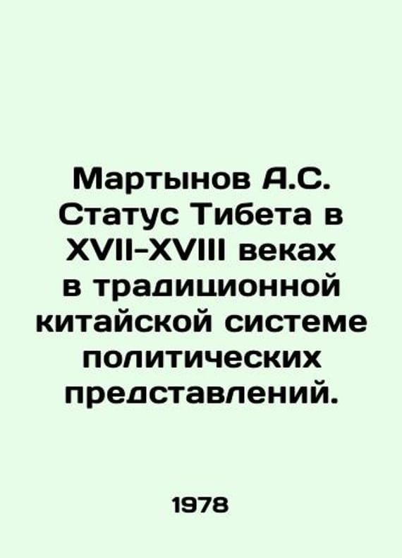 Martynov A.S. The status of Tibet in the seventeenth-eighteenth centuries in the traditional Chinese political system. In Russian /Martynov A.S. Status Tibeta v XVII-XVIII vekakh v traditsionnoy kitayskoy sisteme politicheskikh predstavleniy.Institute of Oriental Studies of the Academy of Sciences of the USSR. Moscow. Science. 1978.We have thousands of titles and often several copies of each title may be available. Please feel free to contact us for a detailed description of the copies available. SKUalbb533989ec0fb02d0.