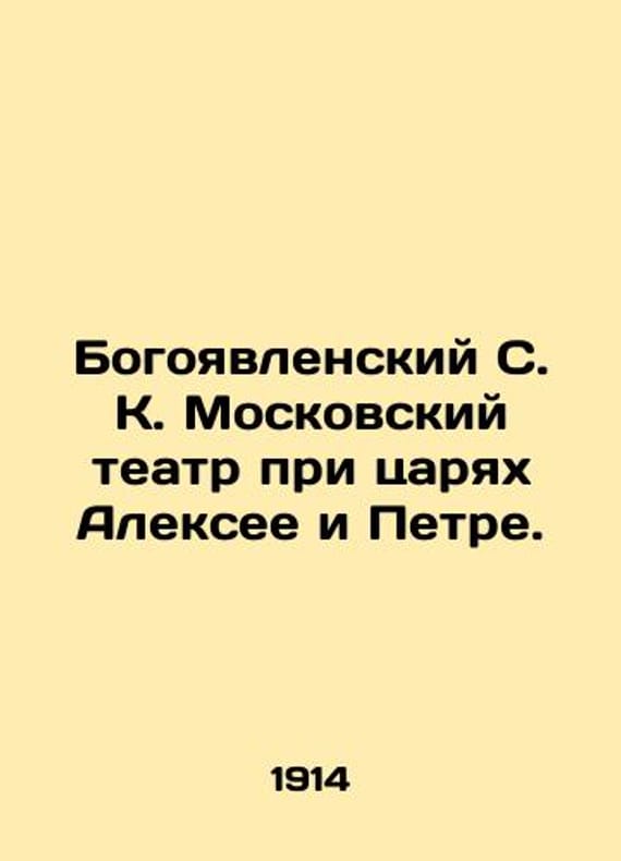 Bogoyavlensky S. K. Moscow Theatre under Tsars Alexey and Peter. In Russian (ask us if in doubt)/Bogoyavlenskiy S. K. Moskovskiy teatr pri tsaryakh Aleksee i Petre. Short description: In Russian (ask us if in doubt).Moscow University Printing House 1914 XXII + 189 + 2 AD. The figures (salaries stage construction costs etc.) give an idea of how much the monarch was prepared to spend in order to become involved in European entertainment and how soon he cooled down for such an occupation We have thousands of titles and often several copies of each title may be available. Please feel free to contact us for a detailed description of the copies available. SKUalbb57a9fcca0d38b4b