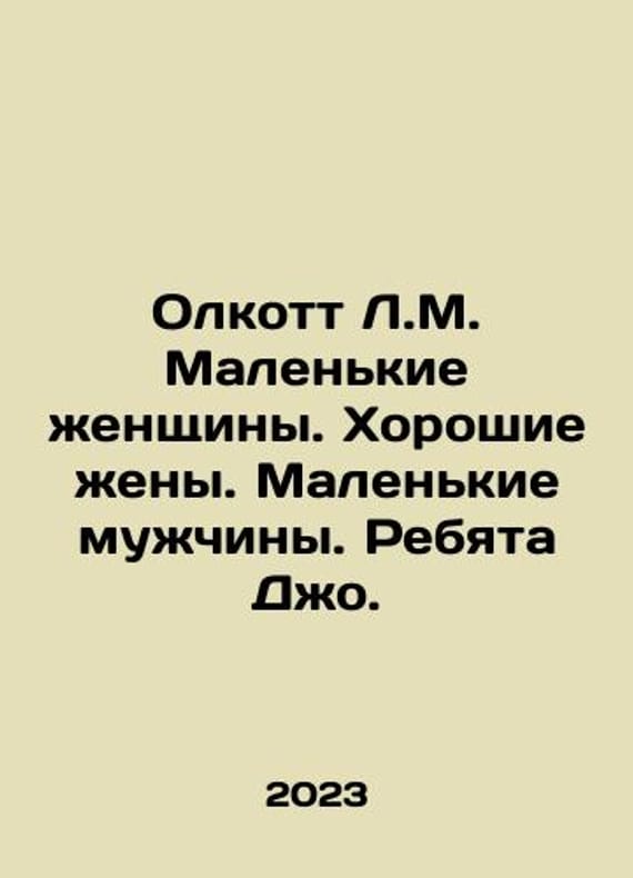 Olcott L.M. Small women. Good wives. Small men. Joes boys. In Russian /Olkott L.M. Malenkie zhenshchiny. Khoroshie zheny. Malenkie muzhchiny. Rebyata Dzho. Series: Library of World Literature (WLWL). St. Petersburg: WLWL, 2023, 864 p. We have thousands of titles and often several copies of each title may be available. Please feel free to contact us for a detailed description of the copies available. SKUalbb5de6ed6a4faecda.