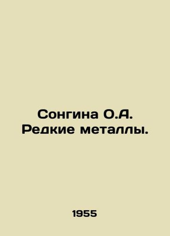 Songina O.A. Rare Metals. In Russian /Songina O.A. Redkie metally. Second Edition, revised and supplemented by M. M.: State Scientific and Technical Publishing of Literature on Iron and Nonferrous Metallurgy, 1955. 384c. We have thousands of titles and often several copies of each title may be available. Please feel free to contact us for a detailed description of the copies available. SKUalbb5f08b21b947e374.