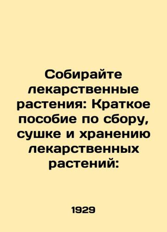 Collect medicinal plants: A brief guide to collecting, drying, and storing medicinal plants: In Russian /Sobirayte lekarstvennye rasteniya: Kratkoe posobie po sboru, sushke i khraneniyu lekarstvennykh rasteniy: With 13 figures from the Central Bank of the DKO under the Central Committee of the All-KSM Raznoexport - State Storg of the RSFSR. [Moscow] The Young Guard, 1929. We have thousands of titles and often several copies of each title may be available. Please feel free to contact us for a detailed description of the copies available. SKUalbb5f411632fa59ac4.