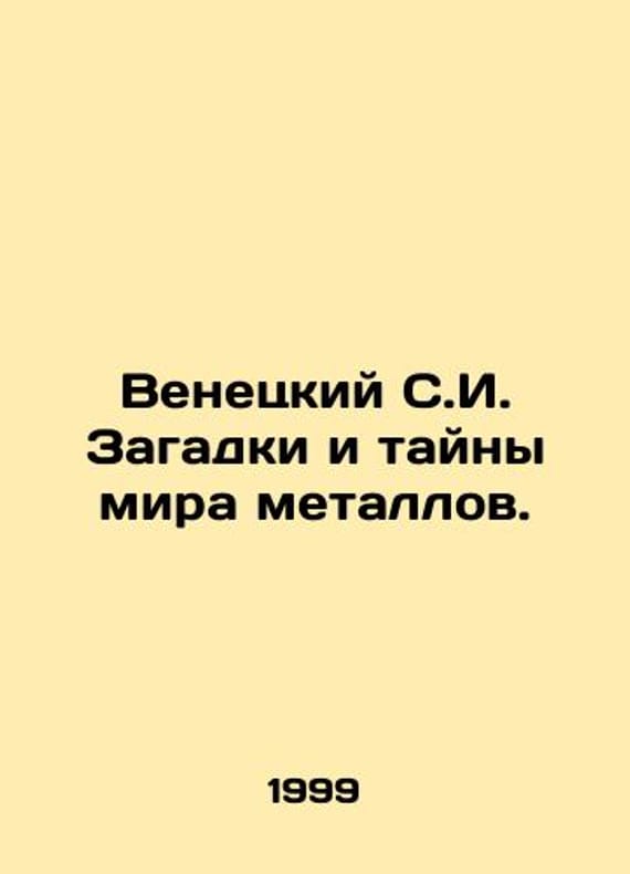 Venetsky S.I. Mysteries and Mysteries of the Metal World. In Russian /Venetskiy S.I. Zagadki i tayny mira metallov. Scientific-Popular Edition. M MISIS 1999. 376s. We have thousands of titles and often several copies of each title may be available. Please feel free to contact us for a detailed description of the copies available. SKUalbb62a077449dd09b5.