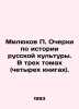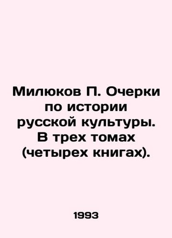Milyukov P. Essays on the History of Russian Culture. In three volumes (four books). In Russian /Milyukov P. Ocherki po istorii russkoy kultury. V trekh tomakh (chetyrekh knigakh). Moscow, Progress, 1993-1995. We have thousands of titles and often several copies of each title may be available. Please feel free to contact us for a detailed description of the copies available. SKUalbb64fdef7bebdf2e4.